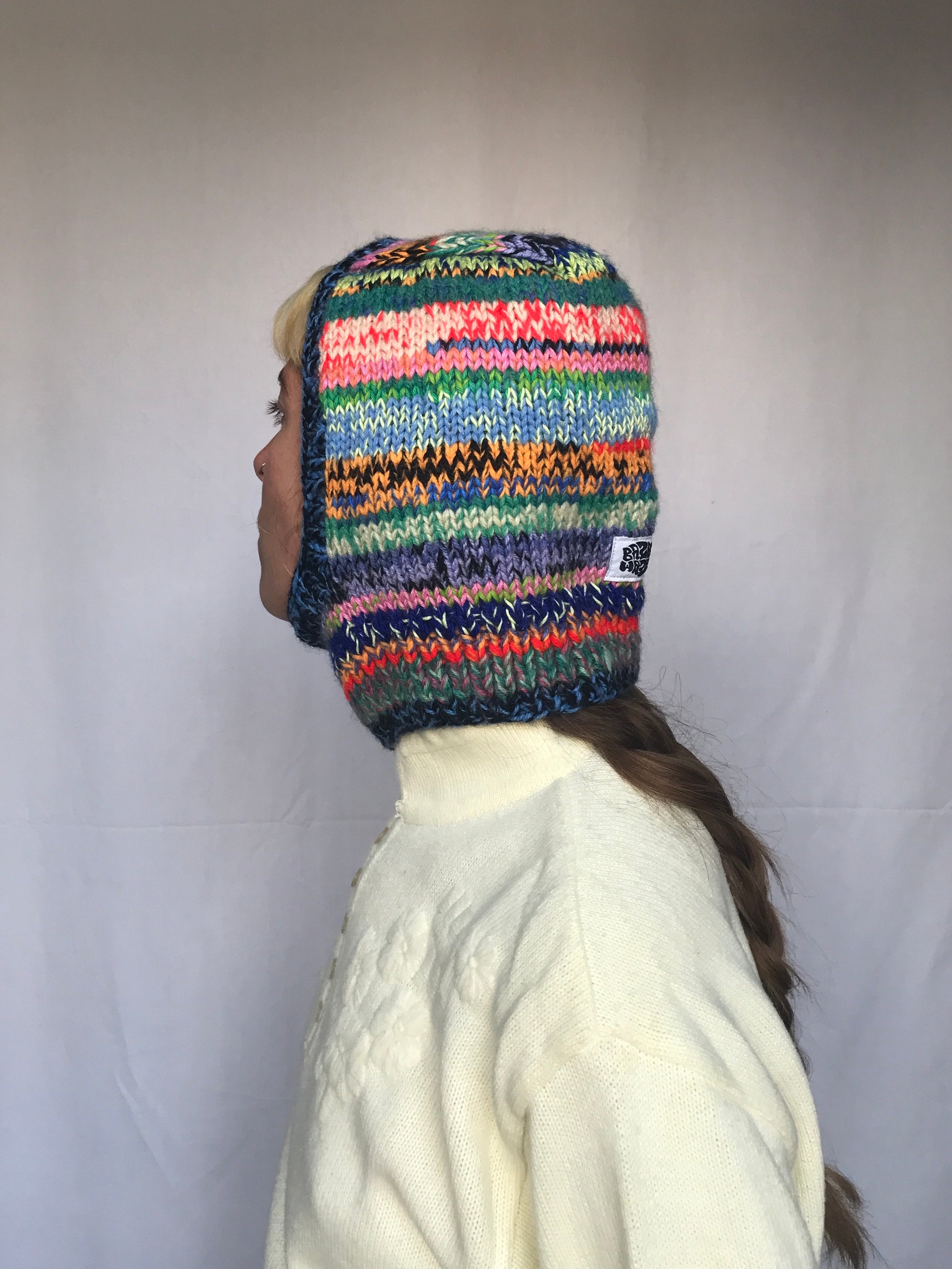 DESCRIPTION : Pièce unique tricotée à la main. Cagoule chaude et épaisse, idéale pour protéger du froid.